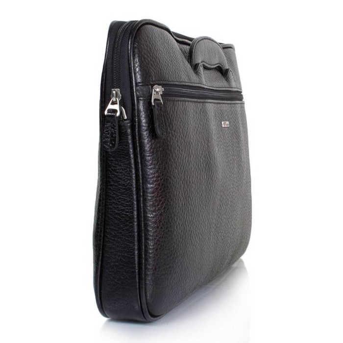 Кількість основних відділень: 1. Є органайзер для ручок, олівців і стилусів, маленька накладна кишенька для телефону і органайзер для зберігання банківських, дисконтних карт і візиток. Також всередині розташований одна прорізна кишеня на блискавки. На лицьовій стороні портфеля є великий прорізна кишеня на блискавки. Портфель має дві ручки для перенесення в руці. У комплект додається знімний плечовий ремінь, довжина якого регулюється за допомогою металевої пряжки (максимально - 146 см). Портфель можна носити в руці, на плечі або через плече. Дно аксесуара щільне. Матеріал підкладки: щільна тканина. Матеріал виробу: шкіра флотар. Колір чорний. Колір фурнітури: срібло. Розміри (X * Y * Z): 42 * 27 * 7 см. Виріб закривається за допомогою блискавки. Документи формату А4 поміщаються в аксесуар. Портфель упакований в поліетиленовий пакет, а також тканинний чохол. Країна походження торгової марки Desisan - Туреччина. Гарантія: 3 місяці.