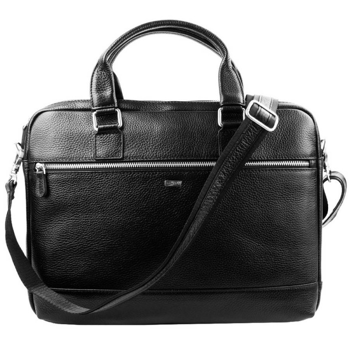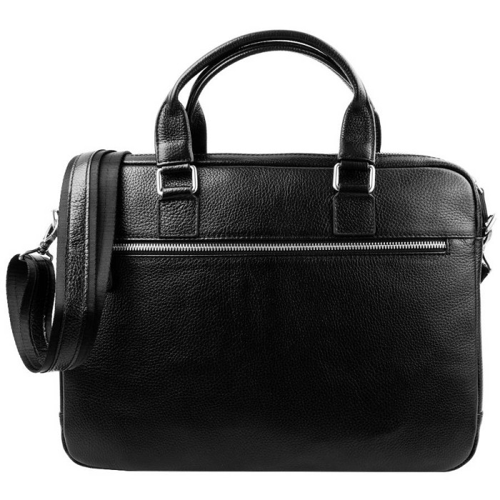 Розміри (X*Y*Z): 38 х 28 х 7 см. Сумка має плечовий ремінець регульованої довжини (максимально - 150 см). Матеріал: шкіра. Підкладу виготовлена ??із щільної тканини. Колір: чорний. Колір фурнітури: срібло. Кількість основних відділень: 1. Усередині є кишеня на липучці, велика кишеня на липучці, кишеня на блискавці, органайзер для ручок, 3 відділення для карток та кишеня для дрібниць.. На лицьовій та тильній сторонах дві кишені на блискавці. Сумка має дві ручки для перенесення у руці. Їхня довжина 40 см. Аксесуар можна носити, на плечі, через плече. Модель закривається за допомогою блискавки. Гарантія: 3 місяці. Документи формату А4 розміщуються в портфелі. Країна походження торгової марки Desisan – Туреччина.