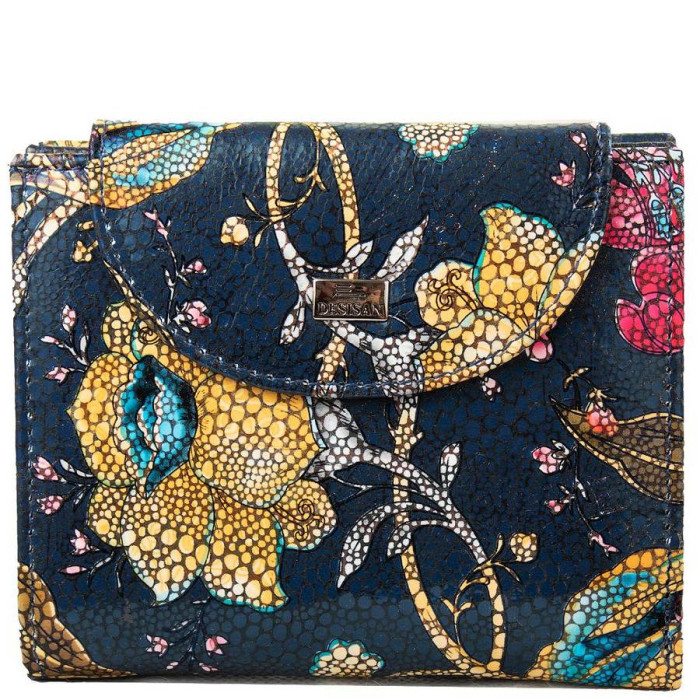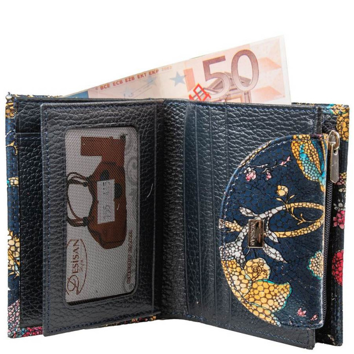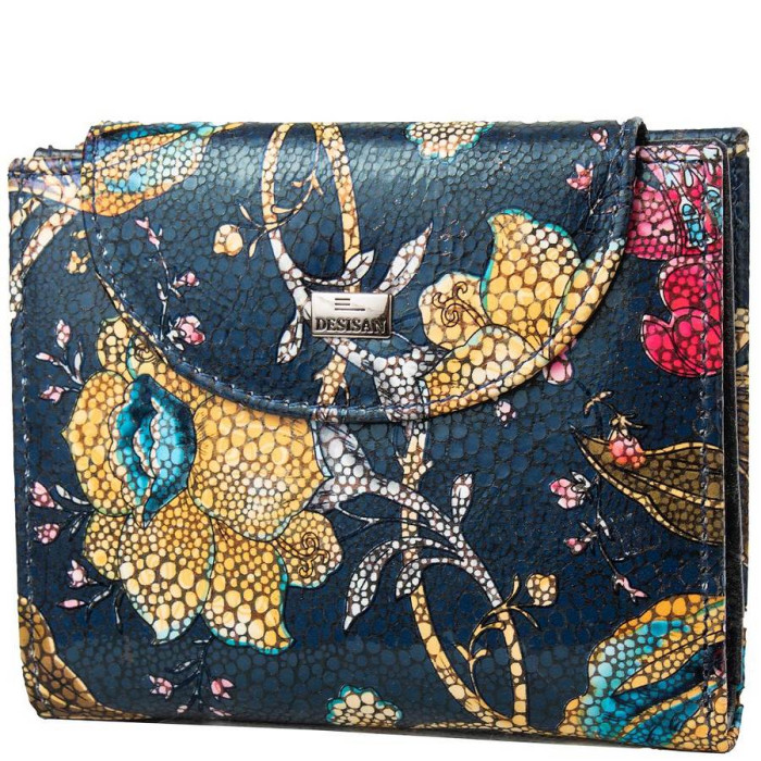 Розміри (X * Y * Z): 9,5 х 12 х 3 см. Ширина в розкритому вигляді: 19 см. Матеріал виробу: шкіра. Колір: різнокольоровий. Колір фурнітури: срібло. Кількість відділень для купюр: 2. Гарантія: 1 місяць. Додаткові відділення: 5. Відділення для карт: 9. Відділення для дрібниці: 1. Монетниця поділена на два відсіки і закривається за допомогою блискавки. Відділення з прозорим віконцем:: 1. Аксесуар закривається за допомогою клапана на механічній кнопці. Виріб упаковано в фірмову картонну коробку. Країна походження ТМ Desisan - Туреччина.