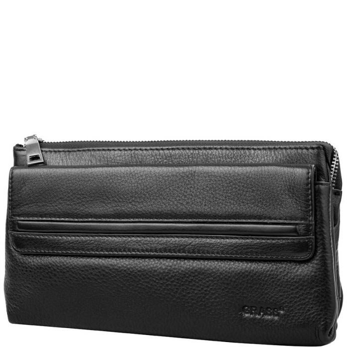У комплект до моделі додається знімний зап'ястного ремінець-петля. Його довжина не регулюється і становить 18 см. Барсетка придатна до носіння в руці, на зап'ясті. Матеріал підкладки: тканина. Матеріал виробу: шкіра. Колір: чорний). Колір фурнітури: срібло Зовнішні розміри: 26*15*3,5 см. Аксесуар закривається за допомогою блискавки. Документи формату А4 не поміщаються у виробі. Модель упакована в тканинний чохол і поліетиленовий пакет. Країна походження торгової марки "GRASS", а також країна-виробник - Туреччина. Гарантія: 3 місяці.