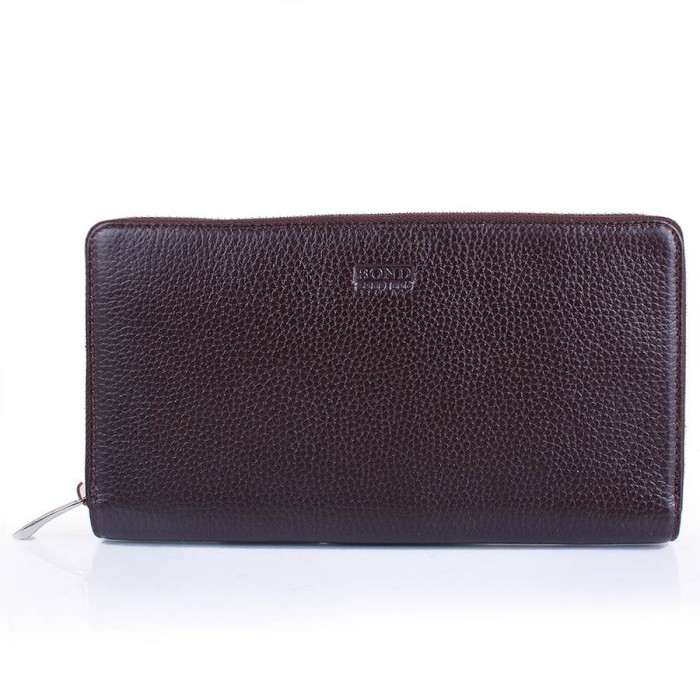 Кількість основних відділень: 1. Всередині є 15 кишені для візиток, банківських та дисконтних карток, 2 горизонтальних накладних кишені, 1 кишеня для перепусток, фотокарт і дрібних документів (з прозорим віконцем), 2 відділення для купюр, розмежовані кишенею-перегородкою на блискавці. Аксесуар придатний для носіння в руці. Виріб має жорсткий каркас. Це означає, що воно не буде м'ятися і деформуватися в процесі використання. Підкладка виготовлена з шкіри. Матеріал: шкіра. Колір: темний коричневий. Колір фурнітури: срібло. Зовнішні розміри: 21*12*2,5 см. Виріб закривається за допомогою блискавки. Документи формату А4 не поміщаються у виробі. Виріб упаковано в картонну коробку. Країна походження ТМ BOND - Туреччина. Гарантія: 3 місяці.