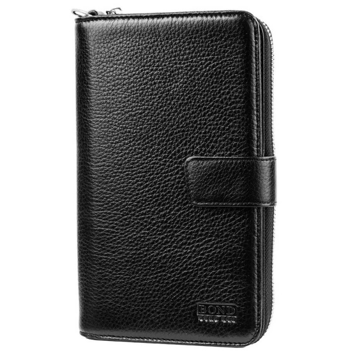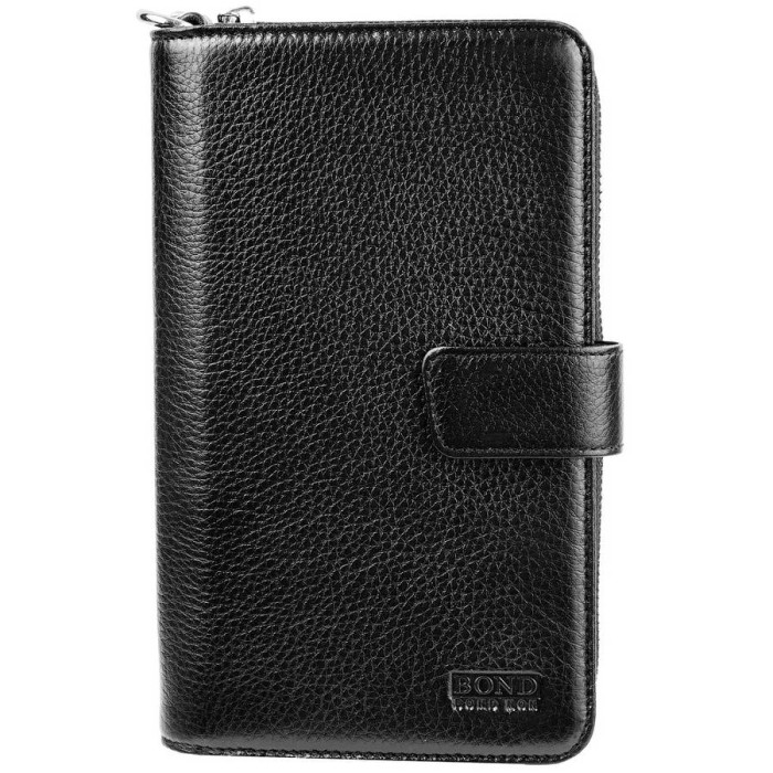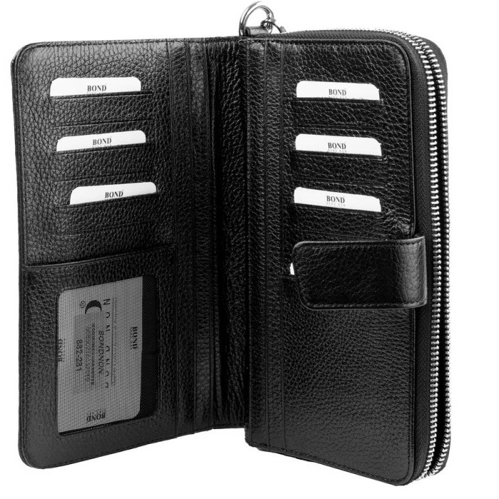 Зовнішні розміри: 13 х 21 х 3 см. Матеріал виробу: шкіра. Колір: чорний. Колір фурнітури: срібло. Кількість основних відділень: 2. Усередині є 2 кишеньки для візиток і кишеня-перегородка на блискавці. Відділення для карт: 14. Відділення із прозорим віконцем: 1. Додаткові відділення: 5. Борсетка придатна до носіння в руці. У комплект входить знімна ручка-петля. Виріб закривається за допомогою механічної застібки. Документи формату А4 не містяться у виробі. Виріб упакованийу поліетиленовий пакет. Країна походженняторгової марки BOND - Туреччина. Гарантія:3 місяці.