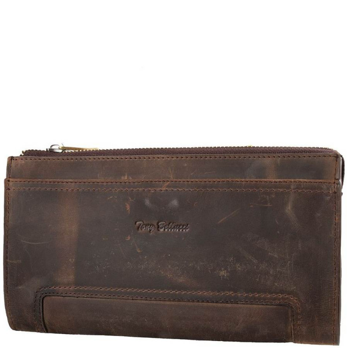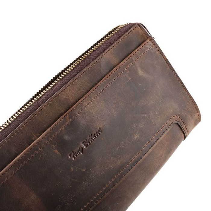 Зовнішні розміри:22 х 12,5 х 2,5 см Матеріал виробу:шкіра. Колір: коричневий. Колір фурнітури:бронза. Кількість основних відділень:1. Всередині є 6 кишеньок для карток, банківських та дисконтних карт, 1 горизонтальний накладний кишеню і 1 кишеня на блискавці. Аксесуар має 1 відділення для купюр. На лицьовій стороні розташований кишеню на кнопці. На тильній - на блискавці. Барсетка має ремінець для перенесення в руці. Барсетка придатна до носіння в руці. Вирібзакриваєтьсяза допомогою блискавки. Документи формату А4не поміщаються у виробі. Виріб упакованоу картонну коробку. Країна походженняторгової марки TONY BELLUCCI - Туреччина. Гарантія:3 місяці.