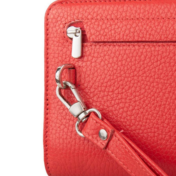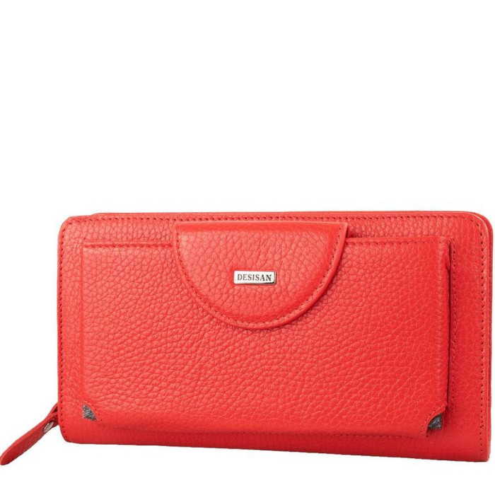Розміри (X * Y * Z): 21 х 12 х 3 см. Матеріал виробу: шкіра. Колір: червоний. Колір фурнітури: срібло. Гарантія: 1 місяць. Кількість основних відділень: 2. Додаткові відділення: 2. Відділення для дисконтних карт: 12. На лицьовій стороні виробу є 1 кишеню на механічній застібці. У комплект до виробу додається знімний зап'ястної ремінець-петля. Аксесуар придатний для носіння в руці і на зап'ясті. Клатч закривається за допомогою клапана на блискавки. Виріб упаковано в картонну коробку. Країна походження торгової марки Desisan - Туреччина.
