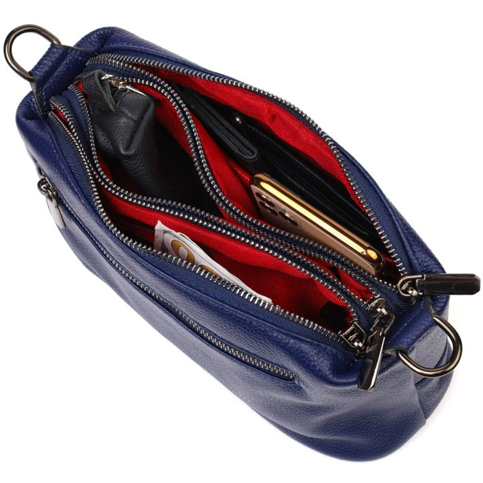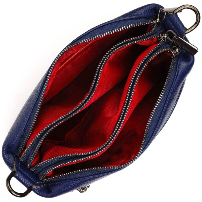 Чудова жіноча сумочка з натуральної шкіри високої якості. Виріб дуже зручний, можна носити на плечі, через плече та під рукою. Модель доповнена фурнітурою кольору темного срібла. Аксесуар має три основні відділення у яких дві кишеньки - на блискавці та відкритого типу, а також кишеня на блискавці зовні. Закривається модель на блискавки, кожне відділення. Ідеальний варіант для будь-якої дівчини на будь-який сезон.
