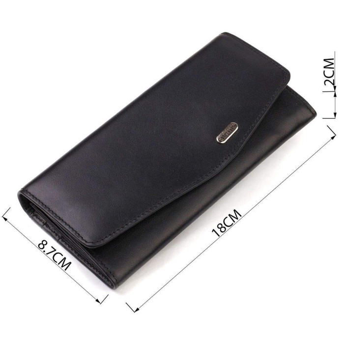Стильний жіночий гаманець із натуральної зернистої шкіри. Аксесуар має три основні відділення, в які поміщаються купюри всіх номіналів, дві перегородки на блискавках, чотири кишені для карток, дві прилеглі кишені, глибока кишеня на всю довжину та монетницю. Закривається аксесуар клапаном на кнопку. Відмінний аксесуар, надійний виробник, який прослужить дуже довго.