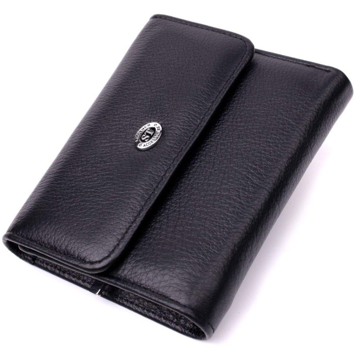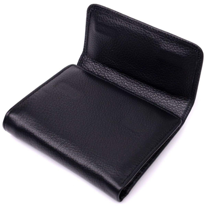 Практичний гаманець середнього розміру з натуральної шкіри найвищої якості. Аксесуар складається з одного місткого відділення для купюр, кишені на блискавці через всю довжину, шести осередків для карт, чотирьох прихованих кишень, кишеньки під плівкою та зовнішньої кишені на блискавці, що чудово прослужить для монет. Зовні виріб прошитий рівним рядком по краю і прикрашений металевим логотипом компанії виробника, який розміщений на клапані посередині. Портмоне доповнено надійною фурнітурою та міцною підкладкою. Укомплектований гаманець у фірмову картонну коробку білого кольору. Виріб стане ідеальним подарунком для дівчини будь-якого віку.