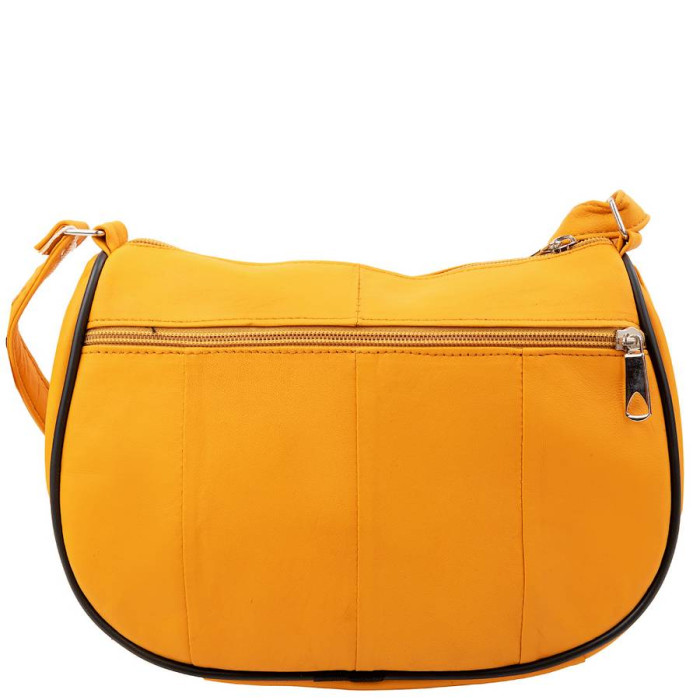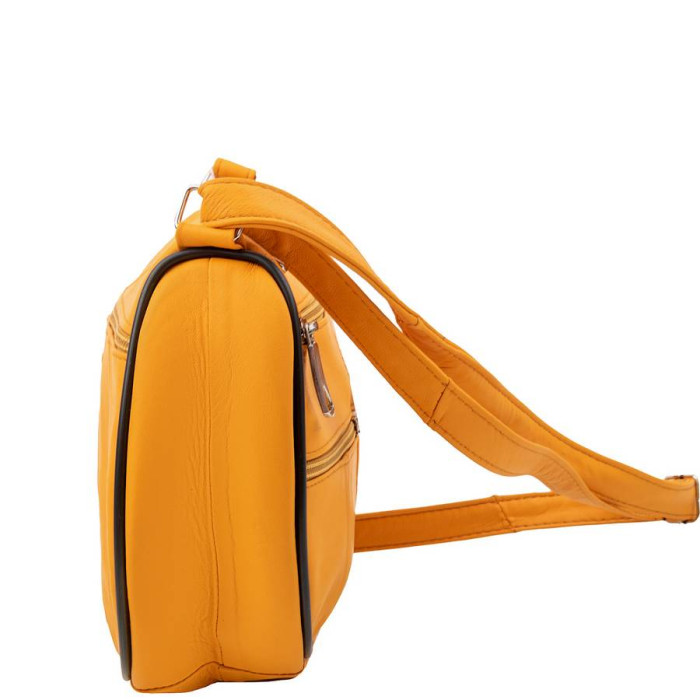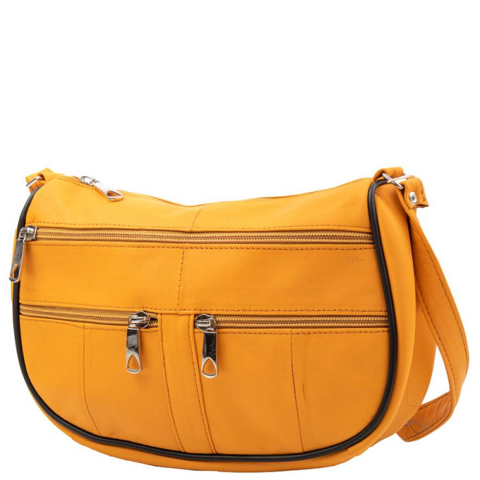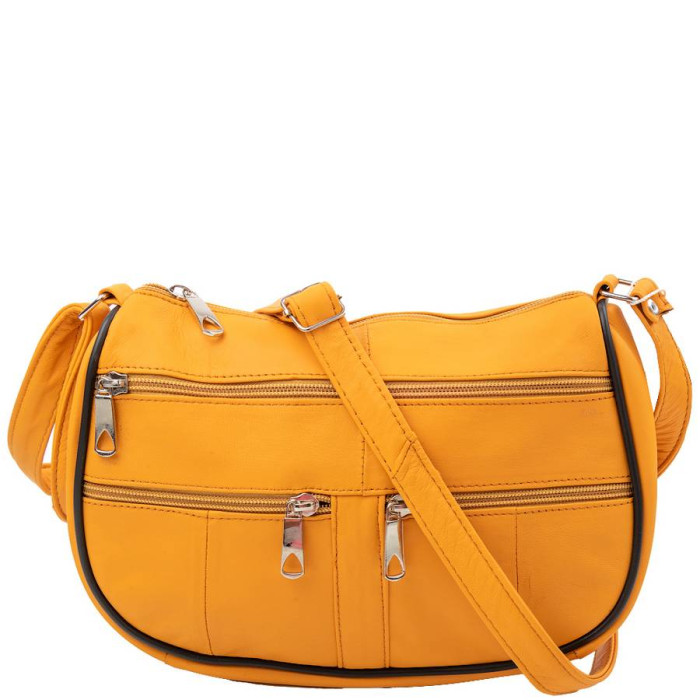 Розміри (X*Y*Z): 23 * 18 * 8 см. Сумка має плечовий ремінь регульованої довжини (максимально - 135 см). Матеріал: шкіра. Підкладка виготовлена з щільної тканини. Колір: жовтий. Колір фурнітури: срібло. Кількість основних відділень: 1. Всередині аксесуар має одну прорізну кишеню на блискавці і один накладної. На лицьовій стороні є три кишені на блискавці. На тильній стороні розташована прорізна кишеня на блискавці. Аксесуар можна носити в руці, на плечі, через плече. Модель закривається за допомогою блискавки. Документи формату А4 не поміщаються в сумку. Країна походження торгової марки TuNoNа - Туреччина. Гарантія: 3 місяці.