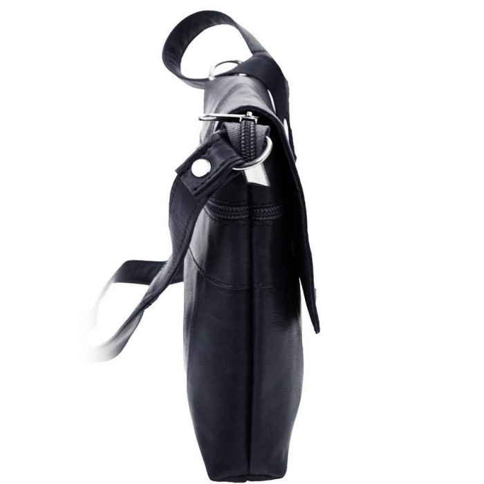Розміри (X*Y*Z):19*16*4 см. Сумка маєплечовий ремінецьрегульованої довжини (максимально - 141 см). Матеріал:шкіра. Підкладаливиготовлена з щільної тканини. Колір:чорний. Колір фурнітури:срібло. Кількість основних відділень:1. Аксесуар має один прорізна кишеня на блискавці. Гарантія:3 місяці. На лицьовій і тильній сторонахсумки є по одній прорізній кишені на блискавці. Аксесуарможна носити, на плечі, через плече. Модельзакриваєтьсяза допомогою клапана на магнітній кнопці. Документи формату А4не поміщаються в сумку. Країна походженняторгової марки TuNoNа - Туреччина.