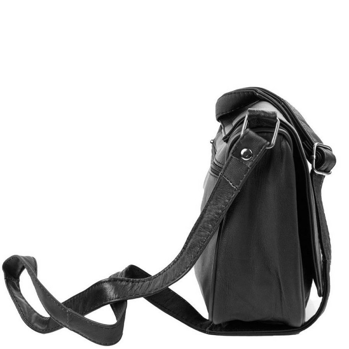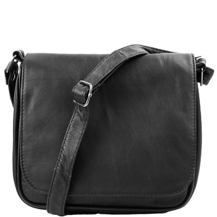 Розміри (X * Y * Z): 20 х 18 х 7,5 см. Матеріал: натуральна шкіра. Колір: чорний. Колір фурнітури: чорний. Підкладали виготовлена з тканини. Гарантія: 1 місяць. Кількість основних відділень: 1. Аксесуар має одна накладна кишеня. На лицьовій і тильній сторонах сумки є по одному Прорізна кишені на блискавці. Сумка має плечовий ремінець регульованої довжини (максимально - 136,5 см). Аксесуар можна носити в руці, на плечі, через плече. Модель закривається за допомогою клапана на магнітній кнопці і блискавки. Документи формату А4 не поміщаються в сумку. Виріб упаковано в поліетиленовий пакет. Країна походження торгової марки TuNoNа - Туреччина.
