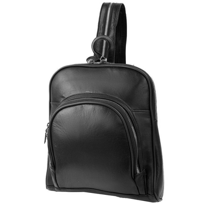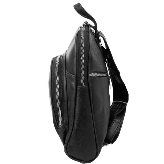 Розміри (X * Y * Z): 23 х 25 х 7 см. Матеріал: шкіра. Підкладка виготовлена з тканини. Колір: чорний. Колір фурнітури: чорне срібло. Кількість основних відділень: 1. Аксесуар має одну прорізну кишеню на блискавки. Гарантія: 1 місяць.