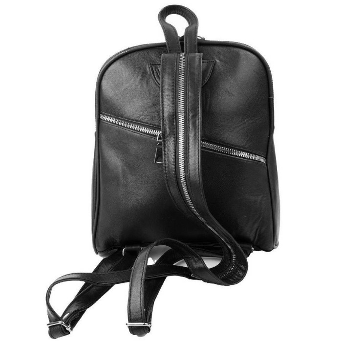 На лицьовій стороні є 1 накладна кишеня на блискавки. На тильній стороні рюкзака є 1 прорізна кишеня на блискавки. Рюкзак має дві плечові лямки регульованої довжини. Деталі незнімні. Їх можна з'єднати за допомогою блискавки і носити модель на одному плечі. Рюкзак має шкіряну петлю для перенесення виробу в руці або щоб повісити його на гачок. Аксесуар можна носити в руці, на плечі, за спиною. Модель закривається за допомогою блискавки. Документи формату А4 не поміщаються в рюкзак. Виріб упаковано в поліетиленовий пакет. Країна походження торгової марки TuNoNа - Туреччина.
