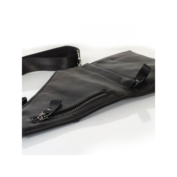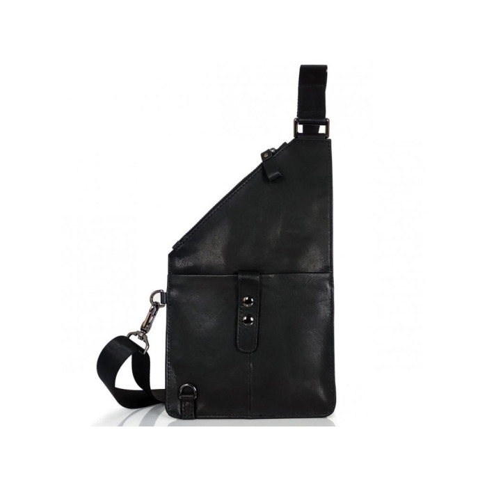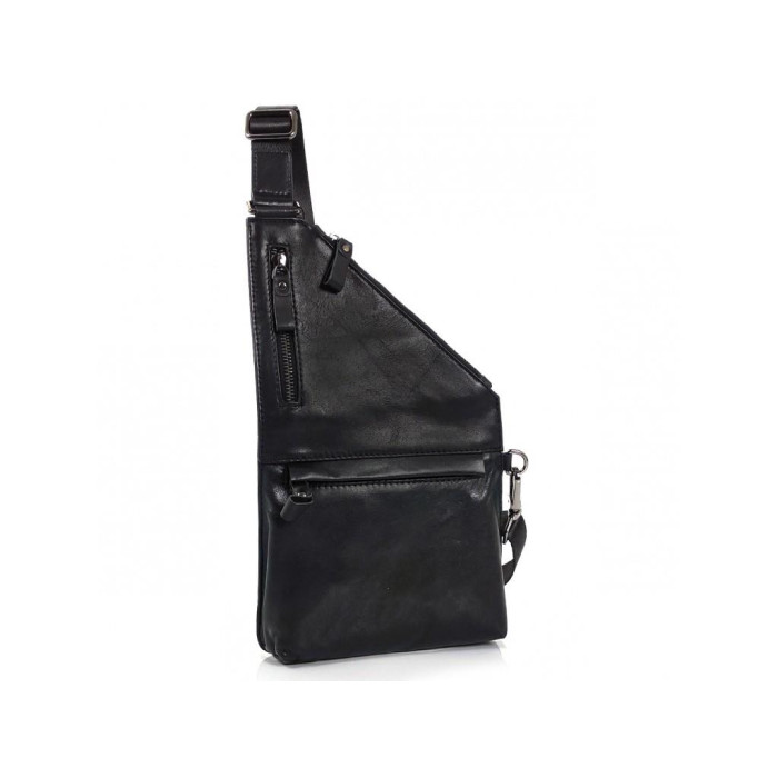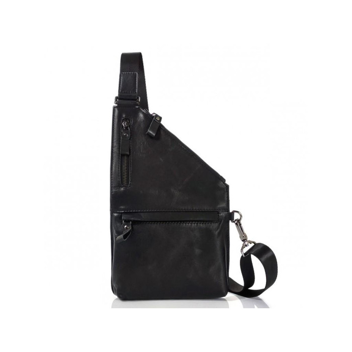 Стильний чоловічий слінг Tiding Bag S-JMD10-8707A із натуральної шкіри чорного кольору.