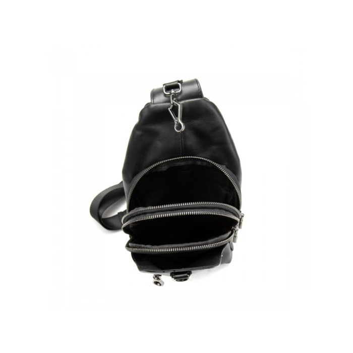Сумка через плече Tiding Bag A0011A із натуральної шкіри у чорному кольорі. Гладка шкіра.