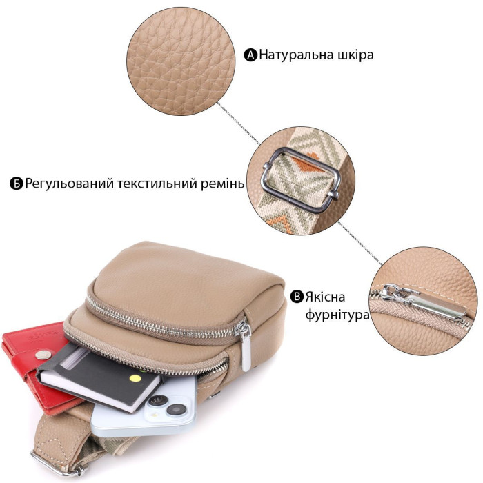 Ця шкіряна сумка-слінг - відмінний вибір для тих, хто віддає перевагу легкості, стилю і функціональності в кожному русі.