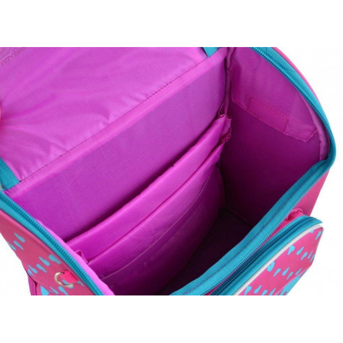 Кількість відділів: 1 основний відділ з рухомими роздільниками і еластичною стрічкою, прозора кишеня для розкладу (на клапані рюкзака), передня кишеня на блискавці, 2 бічних кишені