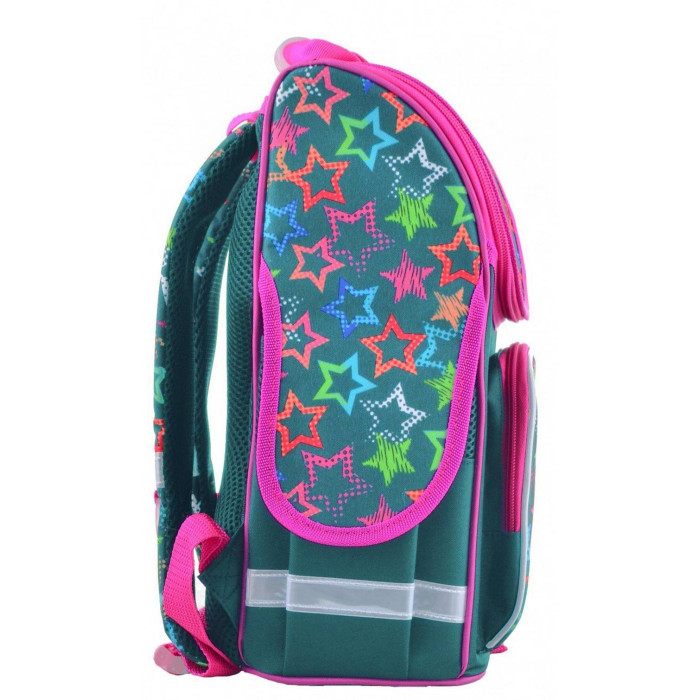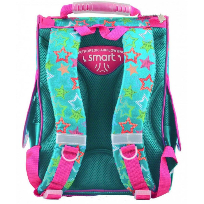 Особливості: ортопедична спинка, регульовані плечові лямки S-подібної форми, прогумована ручка, ручка-петля, світловідбиваючі елементи, якісна фурнітура, ущільнене дно
