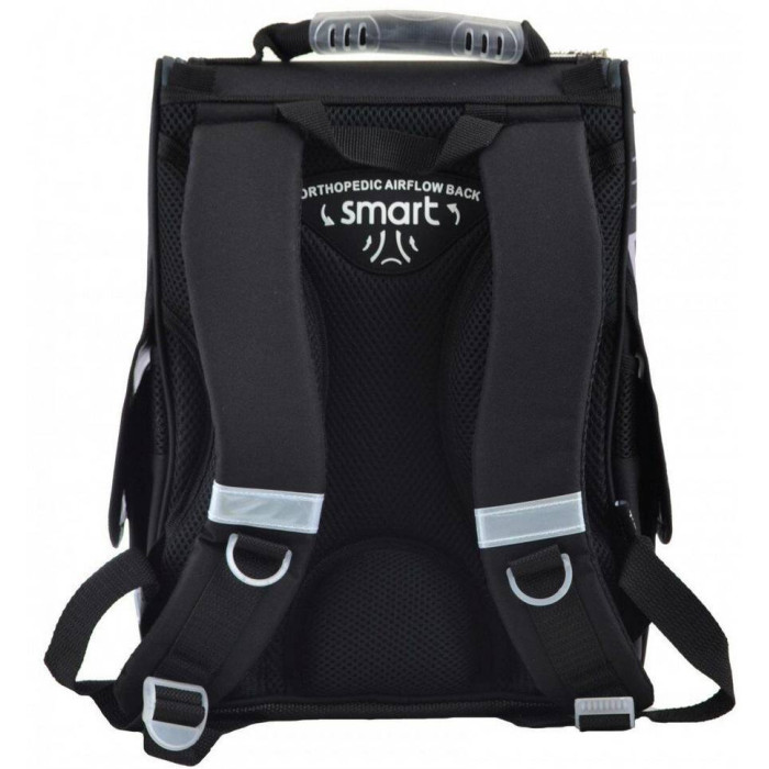 Особливості: ортопедична спинка, регульовані плечові лямки S-подібної форми, прогумована ручка, ручка-петля, світловідбиваючі елементи, якісна фурнітура, посилене дно