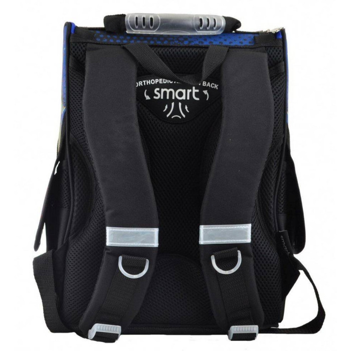 Особливості: ортопедична спинка, регульовані плечові лямки S-подібної форми, прогумована ручка, ручка-петля, світловідбиваючі елементи, якісна фурнітура, посилене дно