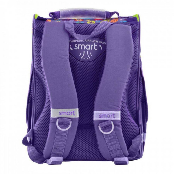 Особливості: ортопедична спинка, регульовані плечові лямки S-подібної форми, прогумована ручка, ручка-петля, світловідбиваючі елементи, якісна фурнітура, ущільнене дно