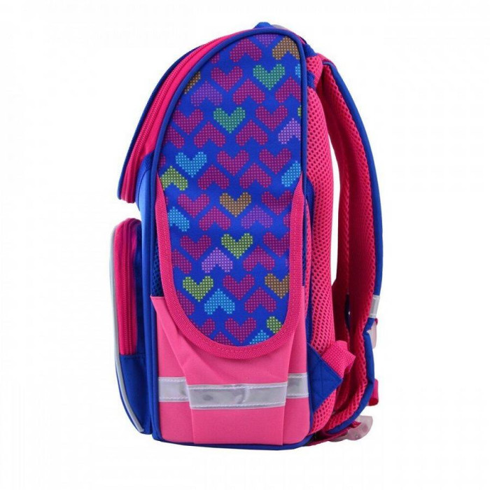 Особливості: ортопедична спинка, регульовані плечові лямки S-подібної форми, прогумована ручка, ручка-петля, світловідбиваючі елементи, якісна фурнітура, ущільнене дно