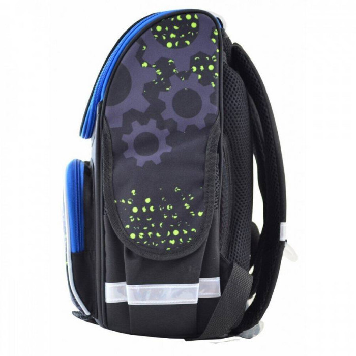 Особливості: ортопедична спинка, регульовані плечові лямки S-подібної форми, прогумована ручка, ручка-петля, світловідбиваючі елементи, якісна фурнітура, посилене дно