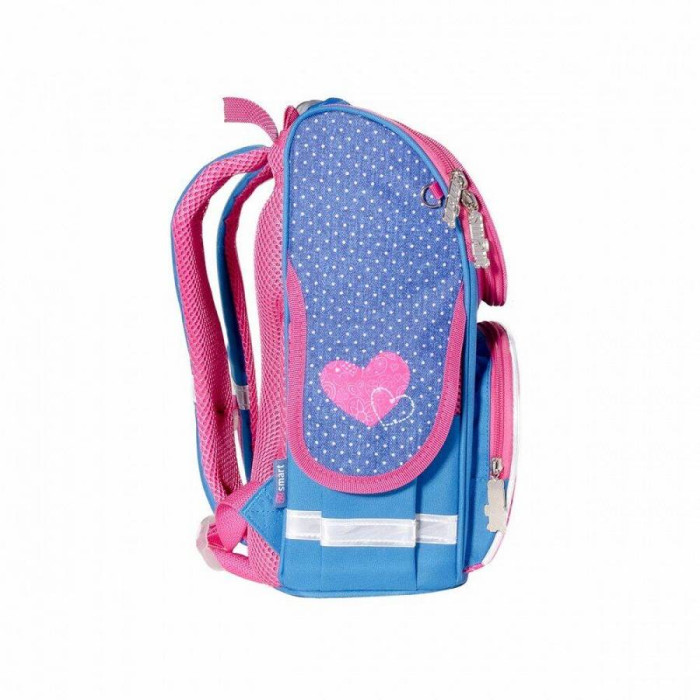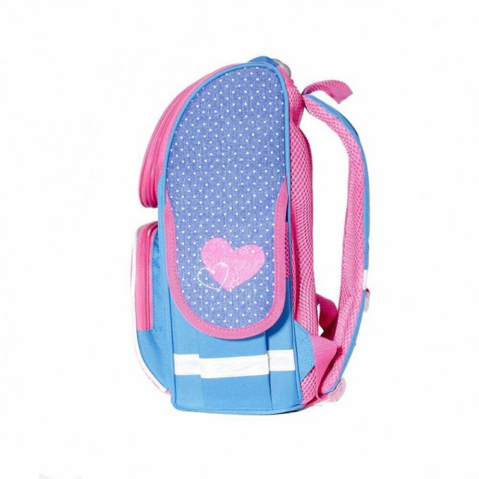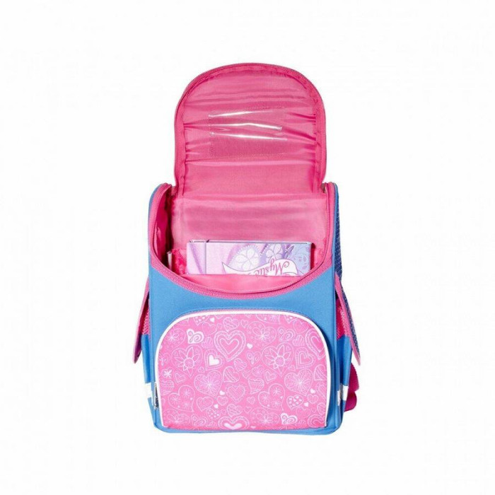 Особливості: рюкзак з пластиковими вставками, які забезпечують жорсткість спинки і боковин. Ортопедичне форма спинки з м'якими накладками знижує навантаження на спину і зберігає поставу дитини. Широкі і зручні S-образні регульовані лямки. Посилене дно з додатковою пластиковою вставкою, захищене ПВХ-матеріалом.