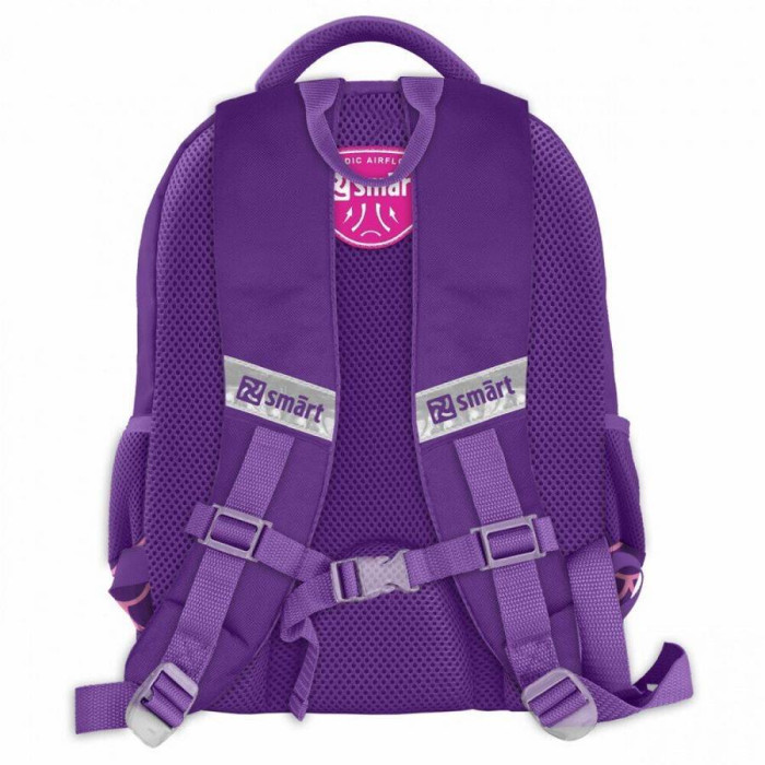 Рюкзак на 2 відділення. Три кишені: один з блискавкою на фронтальній стороні, 2 з боків. В основному відділенні - роздільник для зошитів. Анатомічна спинка. Анатомічні, S-подібної форми лямки.