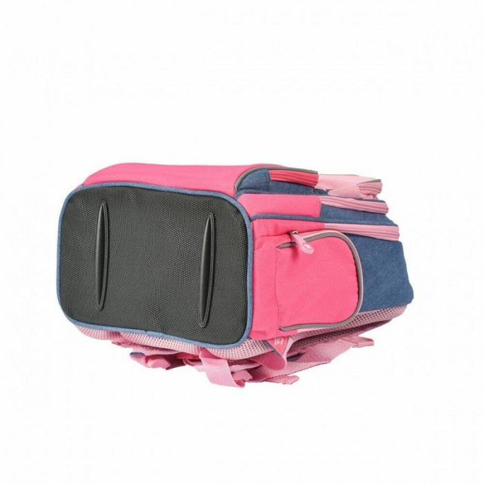 Поперечний ремінь додатково фіксує положення рюкзака і забезпечує рівномірний розподіл навантаження на спину дитини. Форма спинки, рельєфні накладки і покриття сіткою Air Mesh, забезпечують повітрообмін,