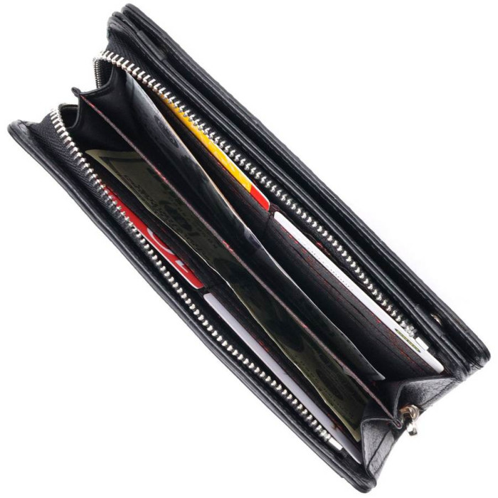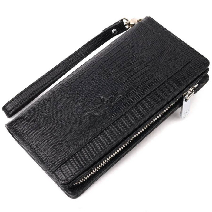 Оригінальний чоловічий клатч із натуральної фактурної шкіри, з використанням добротного текстилю (внутрішня підкладка). Особливістю гаманця є наявність блоку для кредитних карток, що закривається на кнопки. Основне відділення аксесуара закривається на блискавку. Носиться за допомогою ремінця на зап'ясті або просто в руці. Використовується якісна фурнітура кольору срібла. Запакований аксесуар у фірмову коробку та пакет бренду. Вироби з натуральної шкіри завжди будуть чудовим подарунком для близької людини.