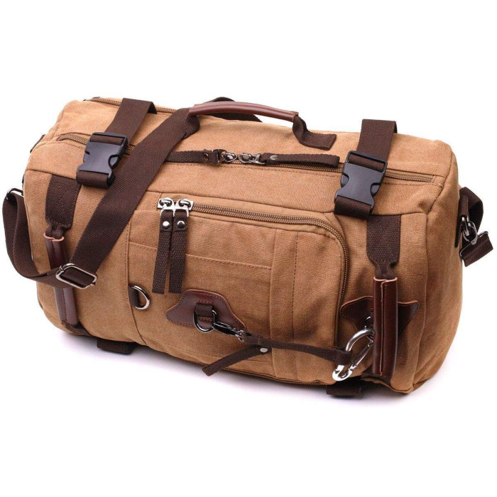 Добротний рюкзак трансформер із щільного текстилю. Модель можна носити як сумку, і рюкзак. Аксесуар має бічні регулятори і може розширюватися залежно від забитости сумки. Виріб має достатній об'єм кишень, щоб Ви легко помістили всі свої особисті речі. Сумка виконана з якісного та міцного текстилю. Виріб стане гідною заміною, якщо ви не бажаєте переплачувати за моделі з натуральної шкіри.
