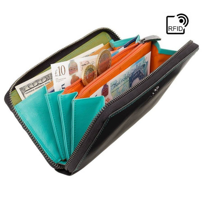 Характеристики - Гаманець жіночий Visconti SP33 Iris c RFID (Black Multi) Матеріал натуральна шкір..