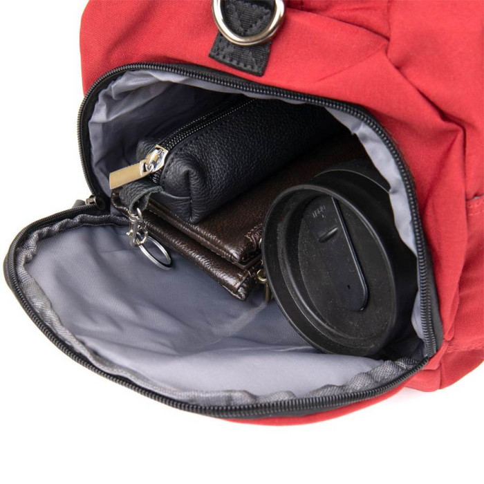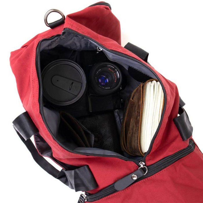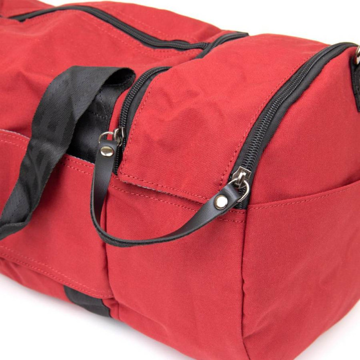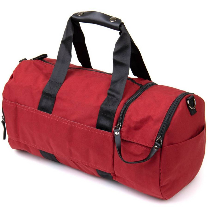 Текстильна дорожня сумка малинового кольору. Сумка підійде як для занять спортом, так і в якості дорожньої сумки. Виріб дуже практичний і не важкий. Сумка має компактні розміри і стане хорошим варіантом для відрядження. В сумку можна зручно помістити пару кросівок до відповідного відділення. У сумці також є петелька для носіння каремата або килимка (щоб його зафіксувати). Сумка з текстилю - ідеальний бюджетний варіант.