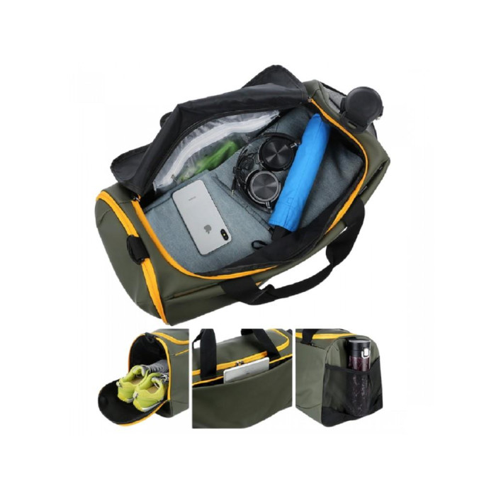 Текстильна чоловіча спортивна сумка хакі Confident TB9-T-217KH, з вологовідштовхуючими властивостями.