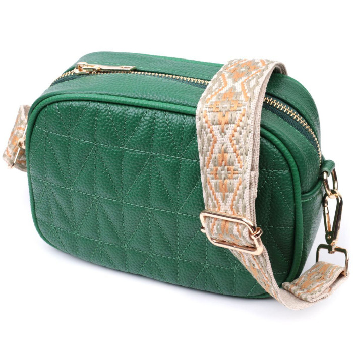 Сумка для жінок на всі випадки життя із натуральної якісної шкіри. Аксесуар складається з основного відділення, яке закривається на блискавку, кишені відкритого типу всередині, а також кишені на блискавці зовні на задній стороні. Носити сумку можна в руці, під рукою, на плечі і через плече, для цього є текстильний ремінь, що знімається. В аксесуарі використано якісну фурнітуру кольору золота.