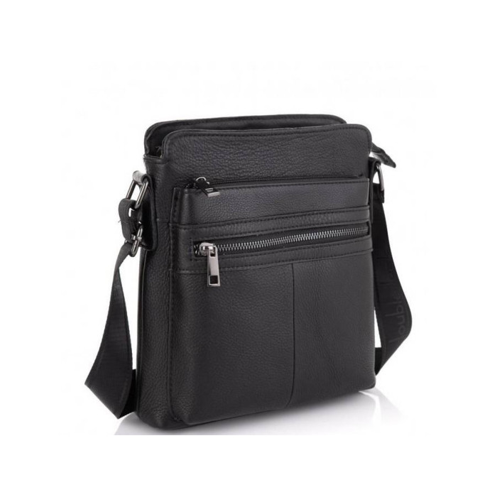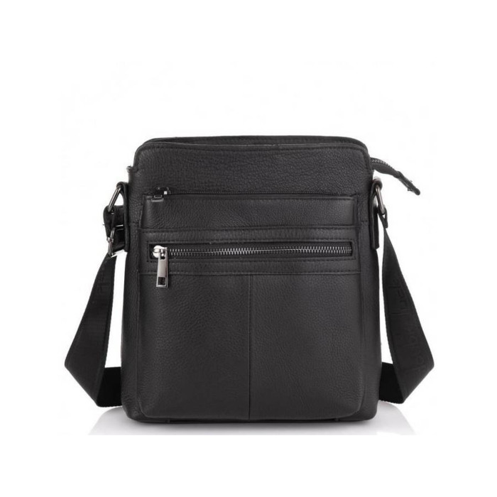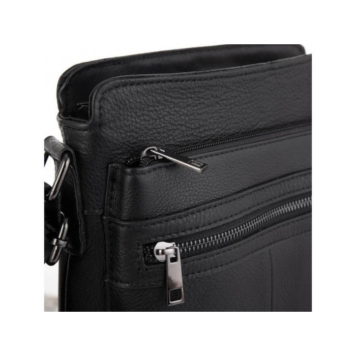 Чоловічий месенджер чорного кольору виконаний з натуральної шкіри зернистої структури.