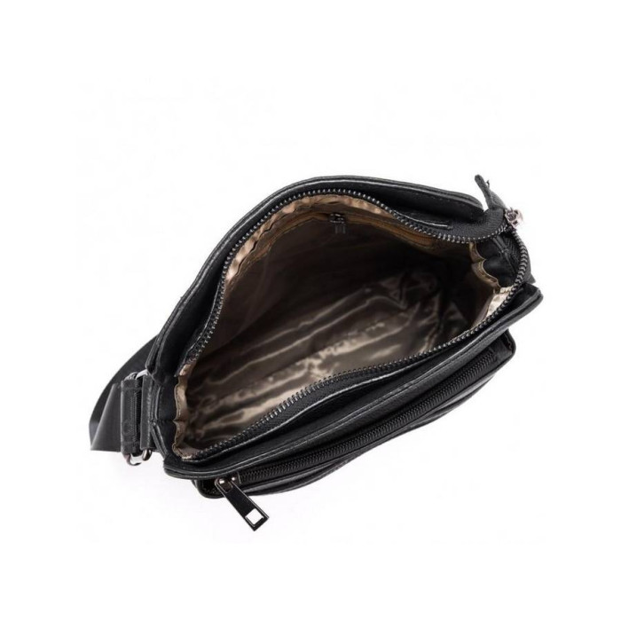 Всередині сумки - одне основне відділення, одна кишеня на замку і дві кишені відкритого типу. З лицьового боку сумки- дві кишені на замку, з тильного- одна кишеня на замку.