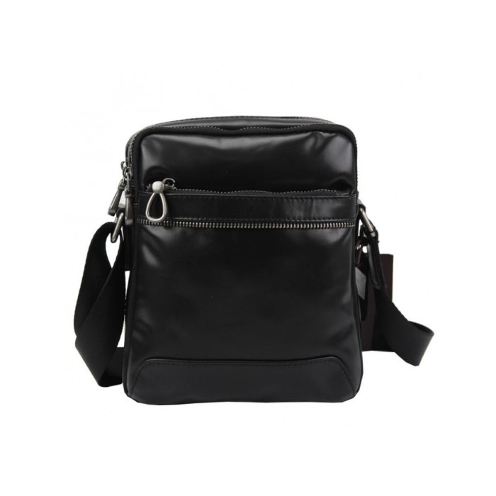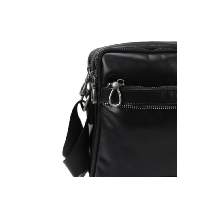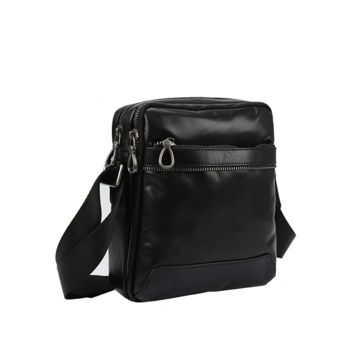 Чоловіча компактна сумка-месенджер чорного кольору на 2 відділення. Усередині сумки є дві кишені: один відкритого типу і один на замку. З лицьового боку кишеню на блискавці, з тильного боку також один кишеню на блискавки.