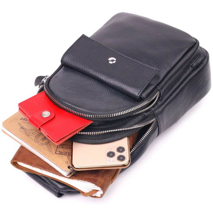 Чоловіча сумка слінг через плече з натуральної високоякісної шкіри з відмінними характеристиками якості та зносостійкості. Аксесуар має досить містке основне відділення та додаткові кишені на зовнішній та тильній стороні для речей, які мають бути швидко доступні. Ремінь можна регулювати по довжині, виконаний з високоміцного текстилю. Шкіряна сумка, завжди була чудовим подарунком для рідних та близьких людей.