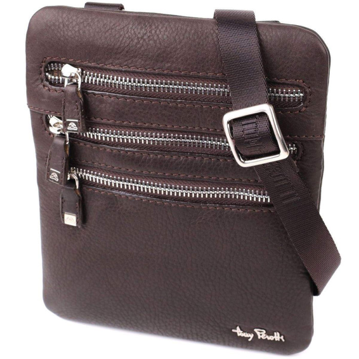 Невелика шкіряна сумка через плече Tony Perotti – практичний та стильний аксесуар для повсякденного використання та ділових завдань. Модель виготовлена з натуральної шкіри високої якості в елегантному коричневому кольорі, що підкреслює класичний характер виробу.