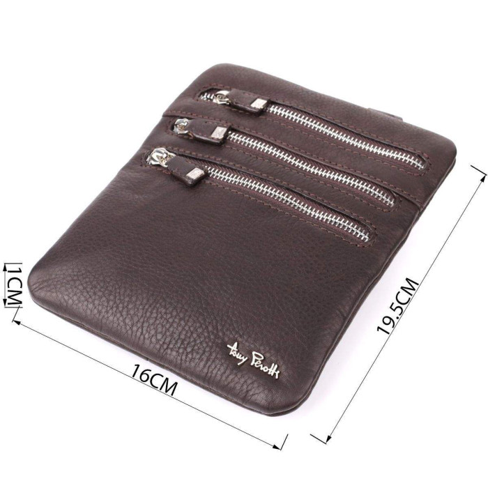 Незнімний текстильний ремінець регулюється по довжині, що дозволяє комфортно носити сумку через плече. Лицьову сторону прикрашає металевий логотип Tony Perotti, а на тильній стороні розташоване тиснення з фірмовим написом бренду. Компактна, функціональна та елегантна, ця сумка стане відмінним вибором для чоловіків, які цінують якість та стиль.