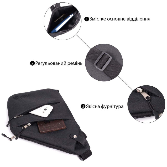 Слінг-сумка у незвичайному дизайні, яка однозначно приверне увагу оточуючих. Виріб пошитий із міцного матеріалу - поліестеру, знаменитого своєю міцністю та зносостійкістю. Носити таку сумку зручно через плече спереду, то всі Ваші речі будуть під руками. Фурнітура яка використовується в аксесуарі, якісна, прослужить не один рік, рядки рівні, акуратні краї. Сумка з поліестеру, дуже вигідна альтернатива шкіряним сумкам, тому що прослужить не менше, не втрачаючи свого первісного вигляду, а ціна приємно порадує.