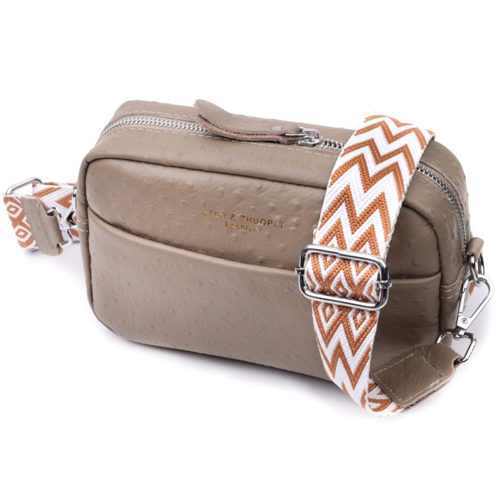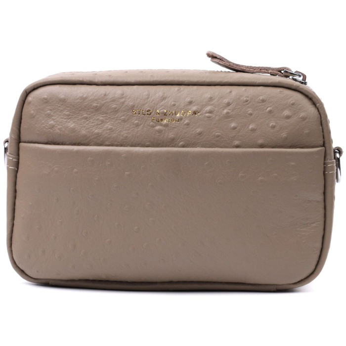 Зручна жіноча сумка на кожен день із натуральної шкіри. Аксесуар складається з основного відділення, що закривається на блискавку, кишені на блискавці та кишені відкритого типу всередині та двох кишень зовні, на лицьовій та тильній стороні. Носити сумку можна на плечі і через плече для цього є текстильний ремінь, що знімається.
