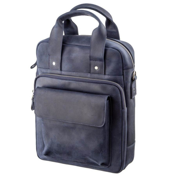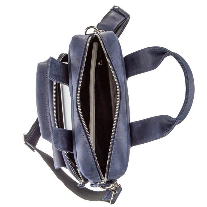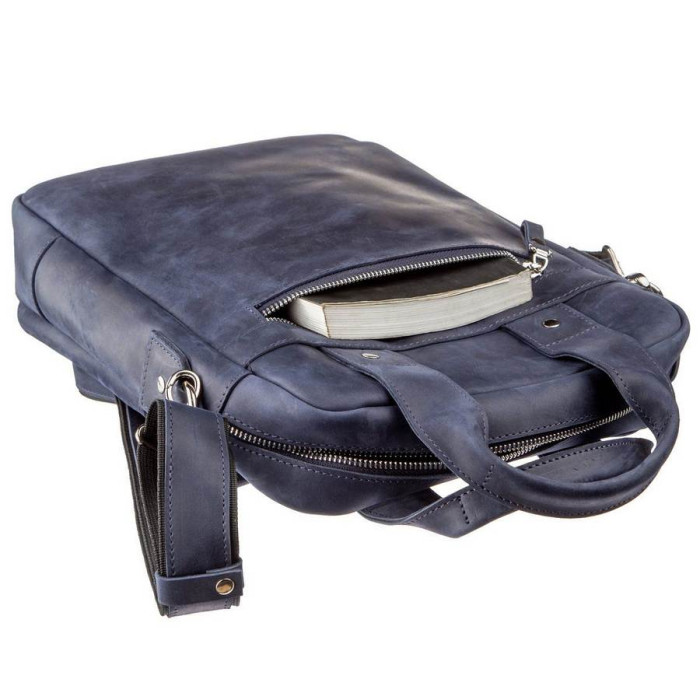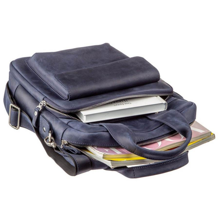 Виконана з натуральної шкіри синя сумка від Shvigel буде прекрасним вибором на кожен день. Сумка вміщує документи формату А4. Ідеальний варіант на роботу або зустріч. Ми розробили дану модель для тих, хто любить якісні і в той же час оригінальні речі. Синій колір прекрасно підкреслить ваш смак і виділить вас з натовпу серед сірої маси. Сумка з натуральної шкіри Crazy horse виглядає по вінтажному. Згодом, на сумці з'являються подряпини, які створюють ефект старовини, за який і люблять цей тип шкіри багато клієнтів. Ідеальний варіант, як для звичайного офісного працівника, так і солідного бізнесмена. Сумка підійде практично до будь-якого вашого роду діяльності. Якщо вам сподобалася ця модель ви можете побачити її в різних типах шкіри і кольорах. Залишилося тільки вибрати на свій смак і ваша сумка прослужить вам далеко не один рік.