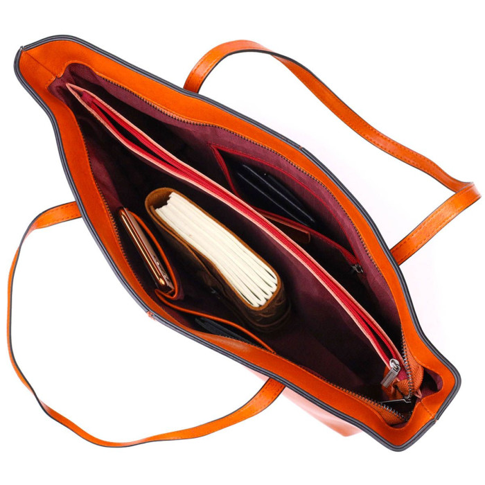 Відмінна жіноча сумка з натуральної шкіри високої якості. Виріб дуже зручний, можна носити на плечі та в руці. Аксесуар має одне основне відділення в якому потайна кишеня на блискавці, подвійна бічна кишеня відкритого типу та кишеня-перегородка на блискавці, на всю довжину. На дні сумки є металеві ніжки для захисту виробу від пошкоджень. Ідеальний варіант сумки для будь-якої жінки на кожен день.