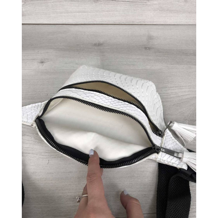Стильна жіноча сумка Елен з підкладкою, виготовлена з штучної шкіри високої якості. Має два відділення, яке відкривається за допомогою блискавок. Має широкий регульований ремінь, завдяки чому сумку можна носити не тільки на поясі, але і на грудях. Максимальна довжина ременя 108 см.