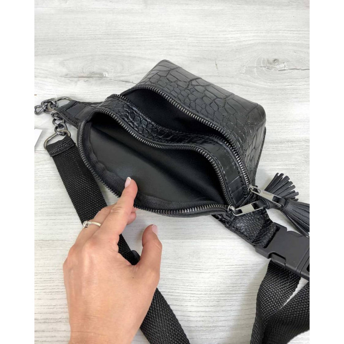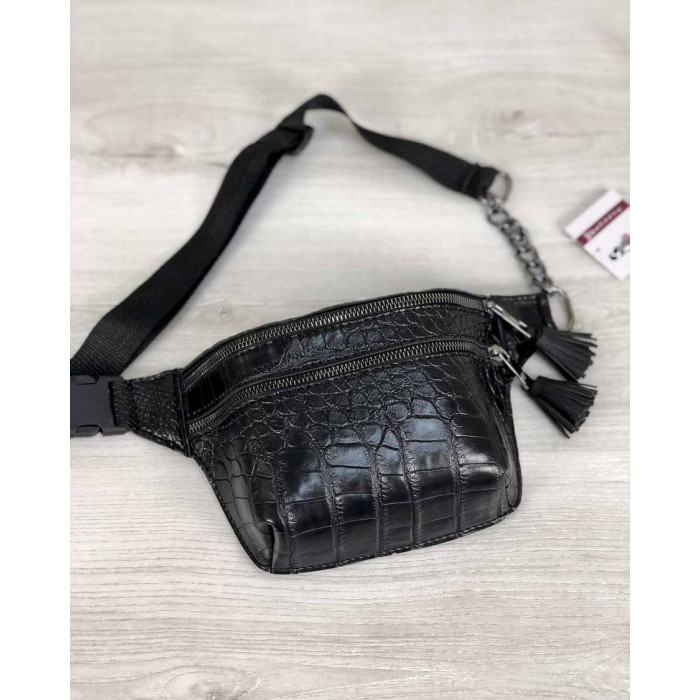 Стильна сумочка на пояс Елен чорний крокодил WeLassie