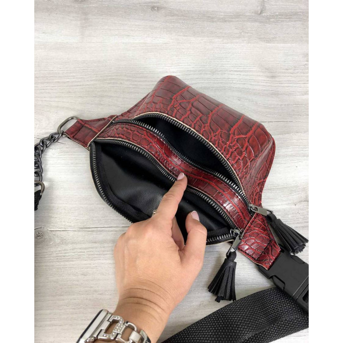 Стильна жіноча сумка Елен, виготовлена з штучної шкіри високої якості. Має два відділення, яке відкривається за допомогою блискавок. Має широкий регульований ремінь, завдяки чому сумку можна носити не тільки на поясі, але і на грудях. Максимальна довжина ременя 85 см.