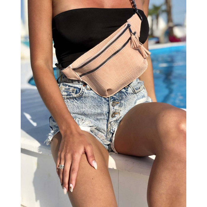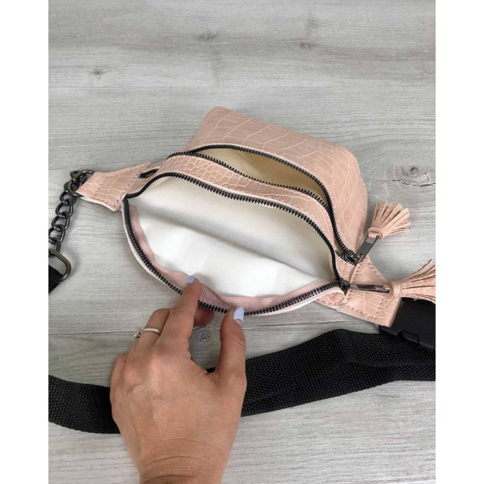 Стильна жіноча сумка Елен з підкладкою, виготовлена з штучної шкіри високої якості. Має два відділення, яке відкривається за допомогою блискавок. Має широкий регульований ремінь, завдяки чому сумку можна носити не тільки на поясі, але і на грудях. Максимальна довжина ременя 108 см.