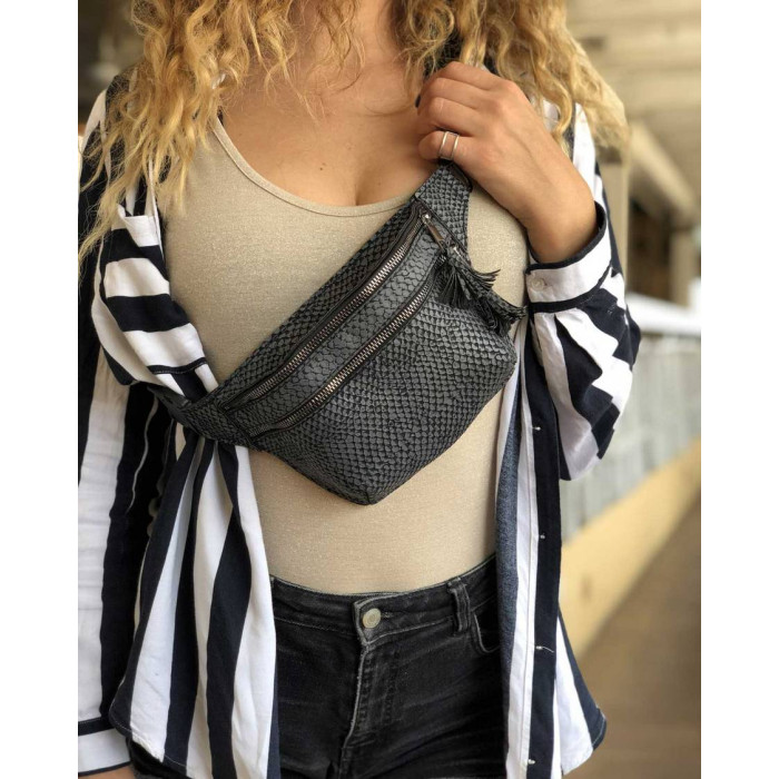 Стильна жіноча сумка Елен, виготовлена з штучної шкіри високої якості. Має два відділення, яке відкривається за допомогою блискавок. Має широкий регульований ремінь, завдяки чому сумку можна носити не тільки на поясі, але і на грудях. Максимальна довжина ременя 85 см.